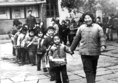 上世纪80年代,小学生排成队放学