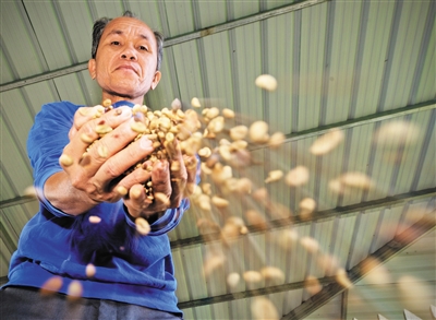曾祥峥在对咖啡豆进行脱壳筛选 刘孙谋 摄