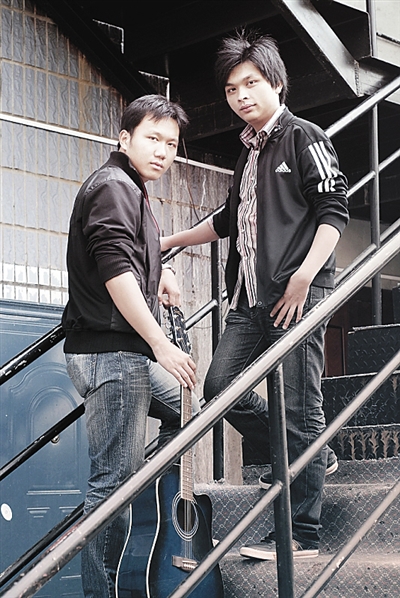 金安仔(右)创作、流星阿文演唱的R&B风格的海南话歌曲,一度非常红火