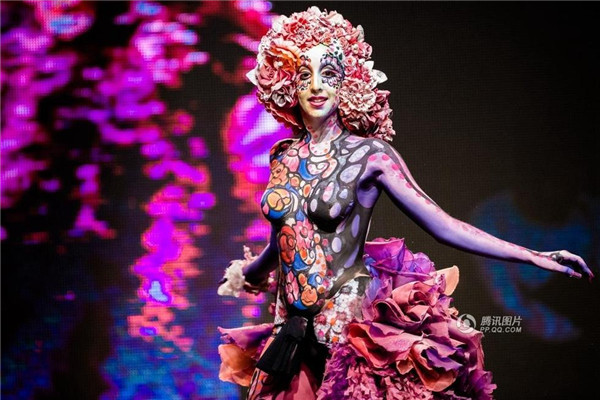 西班牙学生人体彩绘秀 绚丽如科幻电影