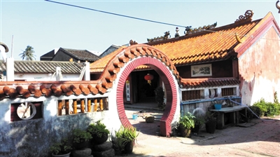 13日,本报记者来到万宁市后安镇广善庵时,看到庵堂置身于民宅中,围墙上都被喷上红漆,四间琉璃瓦房在院中,一座六角亭坐落在院子的西南侧,与苍翠的劲松、龙眼树等形成鲜明的格局。