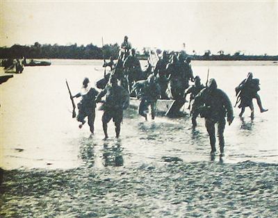 临近天尾港,日军纷纷跳下船,登陆海南岛