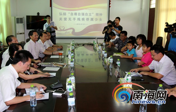 关爱无手残疾侨属少女活动走进海口市云龙镇 陈望 摄