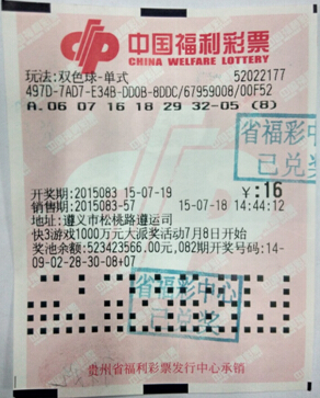 7月19日对于遵义的广大彩民来说是一个值得回忆的日子,在当天双色球第2015083期的开奖中,当地一位彩民仅花16元、通过倍投狂揽8注一等奖及10注二等奖,成为当期双色球的最大赢家。