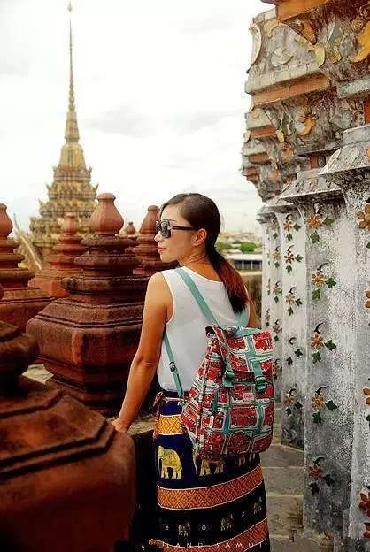 这条半裙跟上面的碎花长裤有异曲同工之妙,配上简单的白T,简直无敌了!而且还带有当地特色的金色大象图案,好应景!