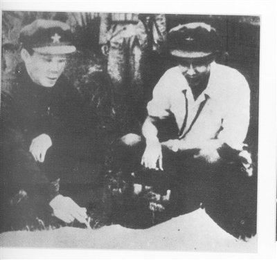 1949年琼纵司令员冯白驹和副司令员吴克之在指挥作战。(资料图片)