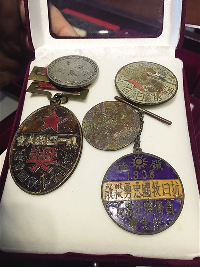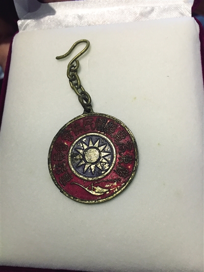 蔡于良收藏的抗日时期徽章。