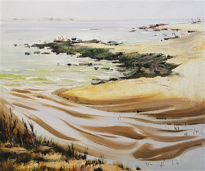 吴松的难得,就在于他抓住了动人的一点——流沙,通过艺术的表现手法,生动刻画了被海水拍打过的沙滩。