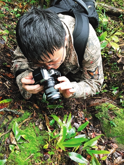 龙文兴在野外拍摄植物记录信息。 周晓梦 摄