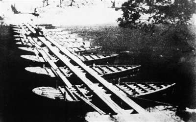 1941年3月2日,用渡船连接成的功果桥浮桥。 记者 苏晓杰翻拍