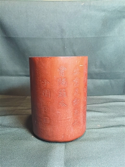 模制葫芦砑张充和楷书笔筒董桥监制。