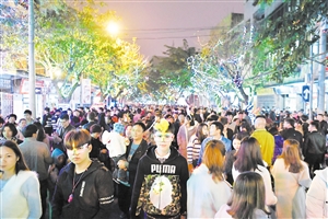 在府城新城路,前来换花、看花灯的市民众多。张俊其 摄