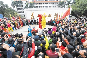 今年换花节的突出特点就是将社会主义核心价值观融入各项文体活动中,包括千灯照春、“装马匹”民俗活动、雄狮闹春、琼剧庆春、“书画贺春”书画展、灯谜游春、“许愿祈福”活动、广场换花舞表演等11项。