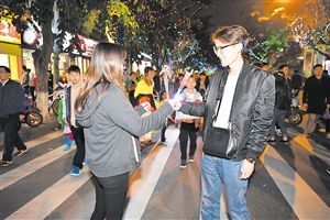 海口“情人节”,俊男美女手持玫瑰觅良缘。张俊其 摄
