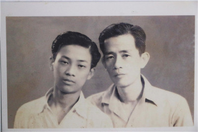 1948年,陈平和长子陈行龙摄于新加坡。