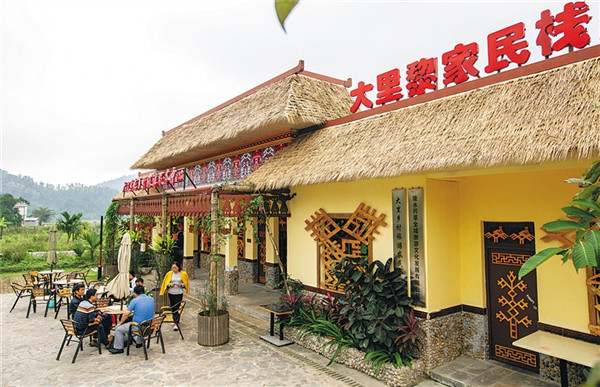 游客在大里黎家民栈享受闲适时光。海南日报记者 武威 摄