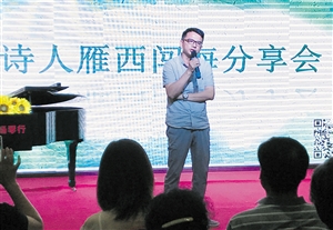 今天(13日)下午,由书香海南文化传媒主办的诗人雁西闯海故事分享会在海口恒大美丽沙艺术厅举行,吸引了众多诗人作家和闯海文化爱好者。