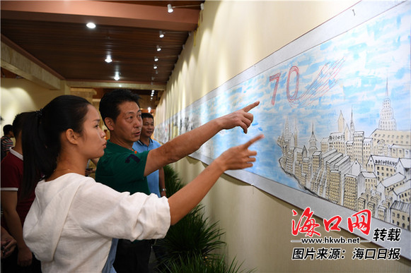 翰墨飘香颂祖国。为庆祝中华人民共和国成立70周年,弘扬中华民族优秀传统文化,充分展示当代书画艺术的重要成就,9月28日上午,由故宫学院中国画研究院、海南省文学艺术界联合会、海南省政协书画艺术研究院、海口市委宣传部主办,海南恩祥艺术馆承办的“向中华人民共和国成立70周年献礼——《伟大的辉煌》李福顺书画长卷展”在海南恩祥艺术馆举行,来自各地的书画爱好者、本地市民游客齐聚一堂,共同欣赏此次视觉盛宴。