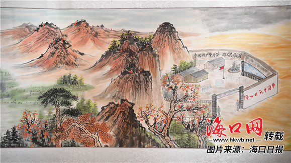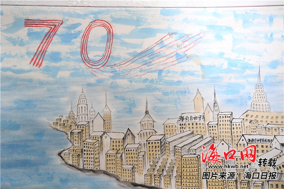 《伟大的辉煌》书画长卷作品局部绘画海南自由贸易试验区。