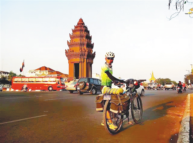2015年,苏庆盛在柬埔寨金边市骑行。