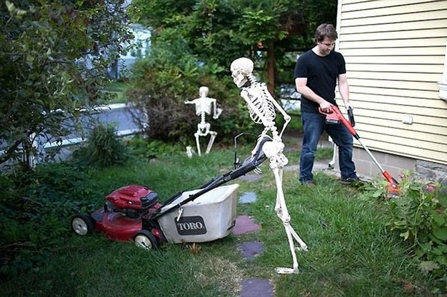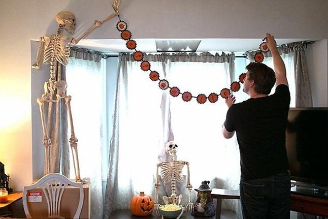 奥克和两具骷髅拍摄了许多照片,如一起剪草坪,一起看电影,一起吃饭,一起给屋子装饰上万圣节主题等。