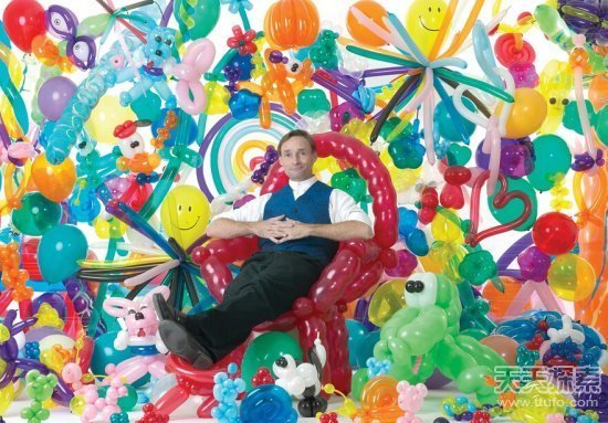 说到用气球捏造型,约翰?卡西迪(美国)当数最牛的人物。约翰创下的纪录有:最短时间捏出小狗气球(6.5 秒)、一分钟和一小时内捏出最多气球造型(分别是13个和747个)。