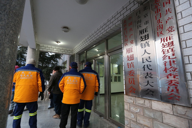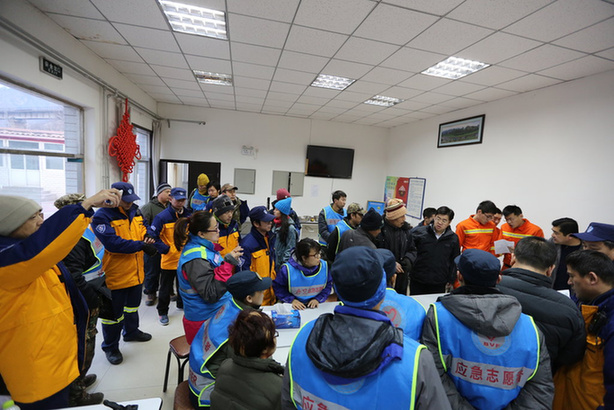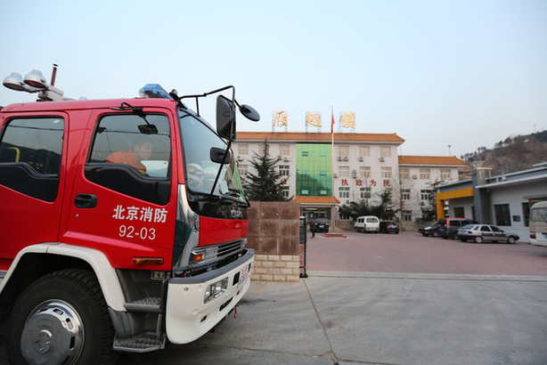 2015年2月1日消息,北京。1月31日下午,一名驴友前往门头沟登山后与家人失去联系。31日晚家属报警,并向蓝天救援队申请救援。2月1日,蓝天救援队18名救援人员仍在搜索,由于不确定失踪人员的去向,目前还没有任何发现。门头沟警方证实接到家属报警,正在进行搜寻。图为北京市门头沟区雁翅镇,救援队在镇政府大门前准备出发。