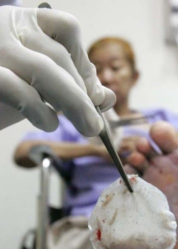 泰国数家医院试验一种“蛆疗法”,作为治疗糖尿病、伤口感染和溃疡的廉价、有效方法。具体方法是,首先把这种“药蛆”引入伤口处培育3天左右,让其破坏伤口内的坏死组织,同时清洁消毒伤口,而后促使人体伤口生成一种有助于新组织生成的生物酶。