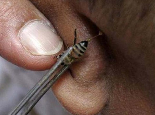 埃及开罗,医生为耳病患者实施蜂疗。通过蜜蜂钉刺人体不同的部位,可以治疗肾病、阑尾炎甚至癌症等疾病。