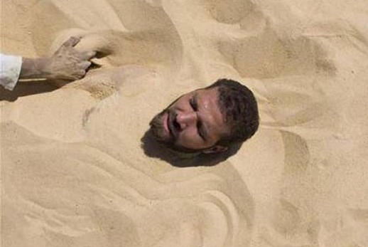 埃及锡瓦绿洲,一名男子接受沙疗驱风湿 。