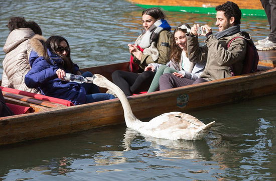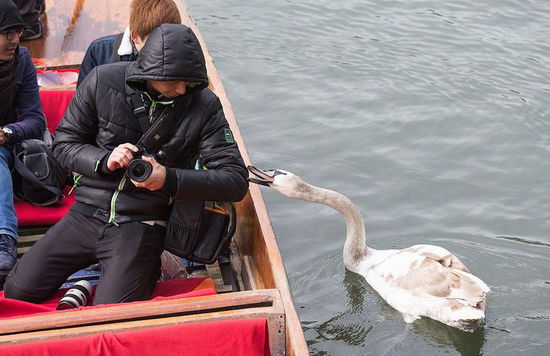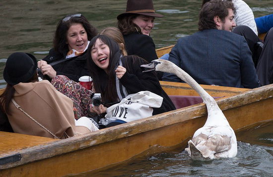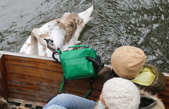 国际在线专稿:据英国《每日邮报》4月7日报道,在英国剑桥郡著名的剑河(Cambridge river)上,曾经有一只名叫“Asbo”的天鹅,它因暴躁的脾气而出名。近日,Asbo的孙子Asbaby被拍到在剑河上恐吓并追咬游客,抢夺面包、香槟甚至试图“偷”走游客背包。
