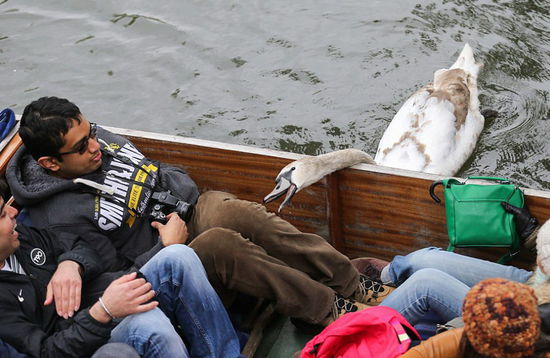 坏脾气天鹅追咬游客抢东西 被称英国剑河“河霸”