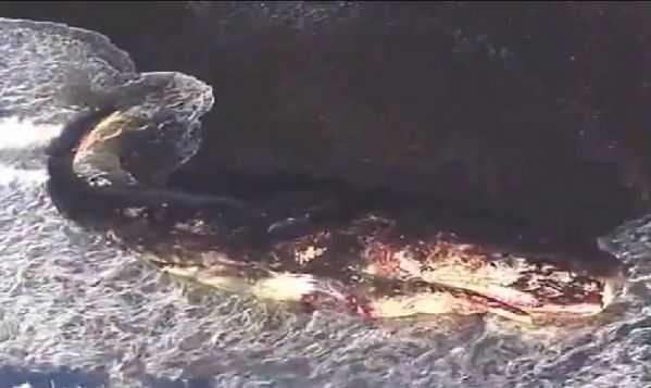 据悉,当地时间本周三,这片海域中大量生物死亡,科学家们和生物学家们到底此地探究原因。被冲上海岸线的这只抹香鲸是已知的17只死亡的鲸鱼中的一只。