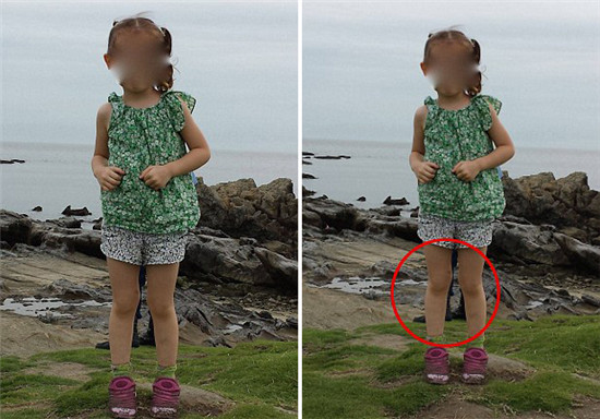 据悉,神奈川海岸临近日本的烈士陵园,周围有很多古老的士兵坟墓。图中,小女孩的双腿后面显露出一双诡异的黑靴,好似这名武士正在眺望大海。在另一张照片中,尽管背景相同,但似乎没人站在女孩身后。