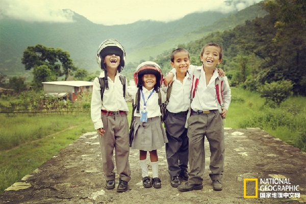 5月30日报道,摄影师臧勇六年前成为了一名儿童摄影师,选择这份工作的原因是好奇孩子们的世界,他们总有用不完的活力与奇思妙想,和他们工作在一起是一件非常有趣的事。图为尼泊尔博卡拉四个放学路上回家的孩子,他们对摄影师一行人的摩托头盔很感兴趣,然后他们带上后就在他们放学路上多了一个乐趣,尼泊尔的孩子们上学一定要穿着很得体的衣服。