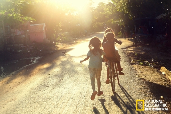两年前,他开始实施这项主题为“泥土花儿”的旅行拍摄计划,寻找并拍摄那些生活在原始土地上的孩子。目前已经拍摄了中国甘肃、宁夏、西藏等地,土耳其,还有东南亚多个国家。图为柬埔寨暹粒贫民窟放学回家的孩子,他们就没有那么整洁的校服了,他们甚至有些孩子上学都是光着上身的,赤脚或穿着拖鞋,但无论穿着什么,放学回家的路上都是蹦蹦跳跳。