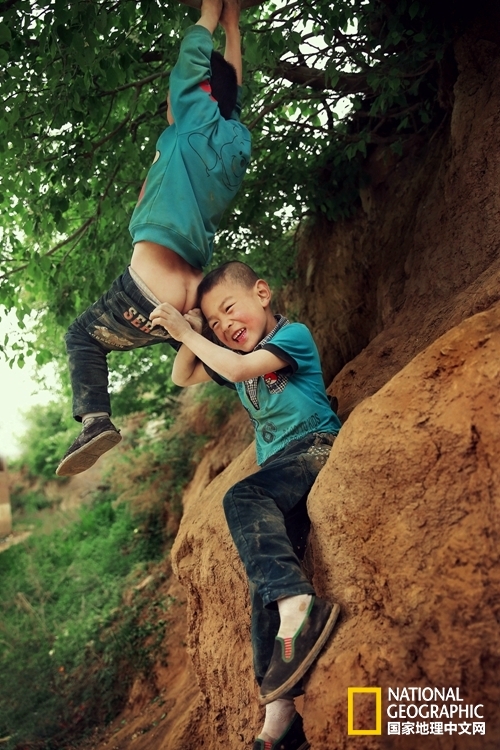 在甘肃武山县一个叫崔家山的村子里孩子没有幼儿园,大部分时间的乐趣就是在土坡上玩耍。