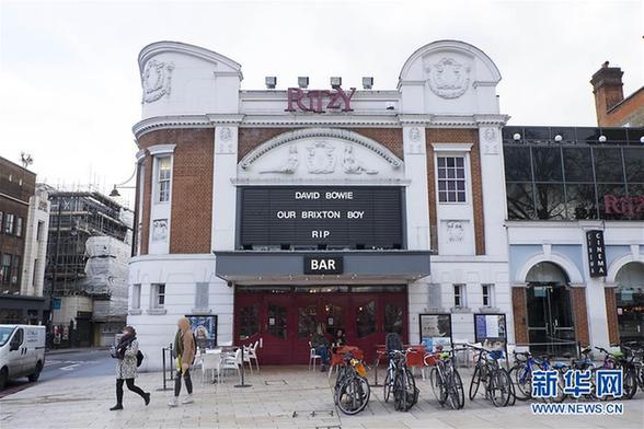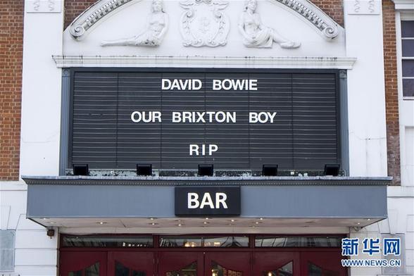 1月11日,英国伦敦南部布里克斯顿的里齐电影院挂出“大卫·鲍伊,我们布里克斯顿的男孩儿,安息”标语。英国老牌摇滚歌星大卫·鲍伊因病去世的消息1月11日在他的个人推特上被公布。新华社发(雷伊·唐摄)