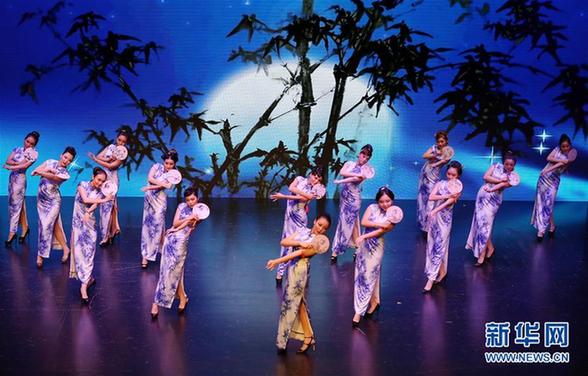 1月15日,在阿联酋迪拜,演员们在舞台上进行旗袍展示。当天,“大爱无疆”阿联酋2016旗袍春晚在迪拜酋长国购物中心剧院举行。新华社记者李震摄