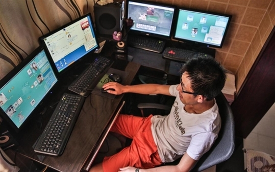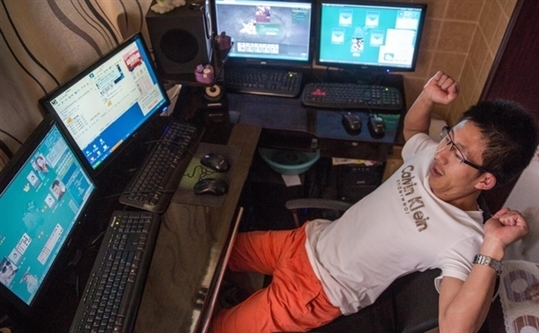 这位游戏代练男子叫做王刚,据国内媒体报道称他每次可以同时操控好几台电脑,而且每台电脑都操作好几个帐号,是一个不折不扣的“金牌代练”。