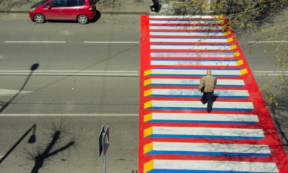 在格鲁吉亚首都第比利斯,带有3D效果的斑马线是保证道路安全的一部分。