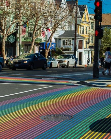 美国旧金山,彩虹色人行横道庆祝节日。