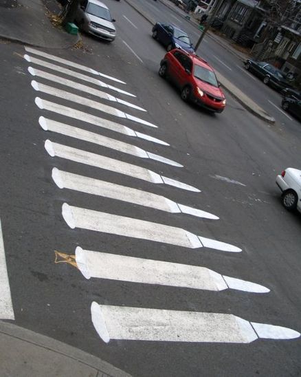 加拿大蒙特利尔,子弹形状的人行横道非常抢眼。