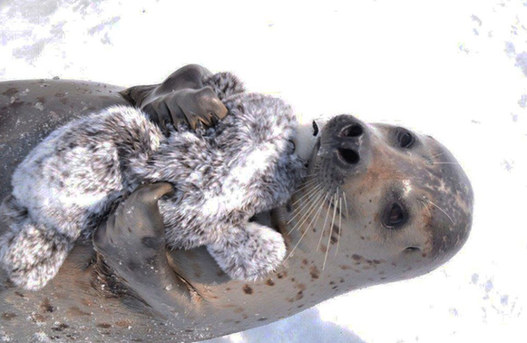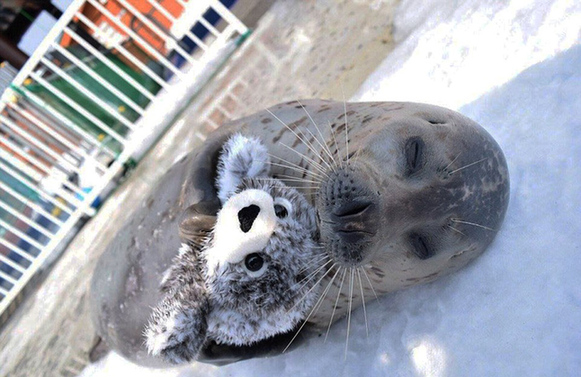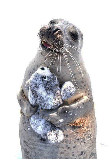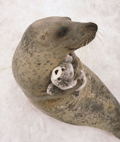 毛绒玩具可以给人们带来慰藉,让人们开心。看来并不仅仅是人类的宝宝喜欢抱着毛绒玩具玩,海豹也是如此。看着这个玩具,日和仿佛看到了迷你版的自己,把它紧紧抱在怀里,还露出了幸福的“笑容”。