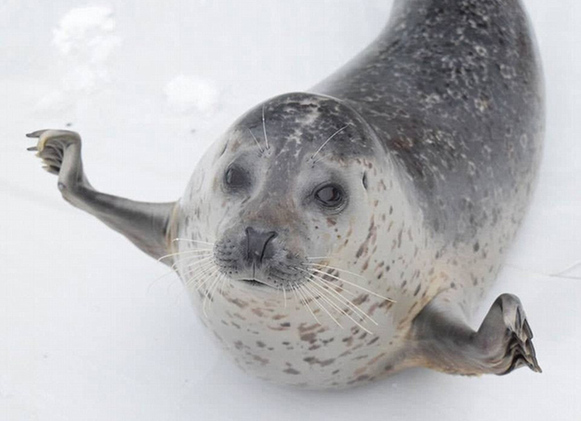 近日,在日本北海道纹别市的纹别海洋公园里,一只叫做日和(Hiyori)的海豹得到了一个毛绒玩具。日和开心地抱着它,爱不释手。