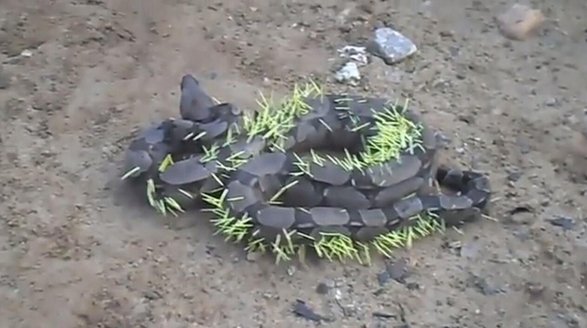 “怼”了豪猪的蛇 全身扎满倒刺