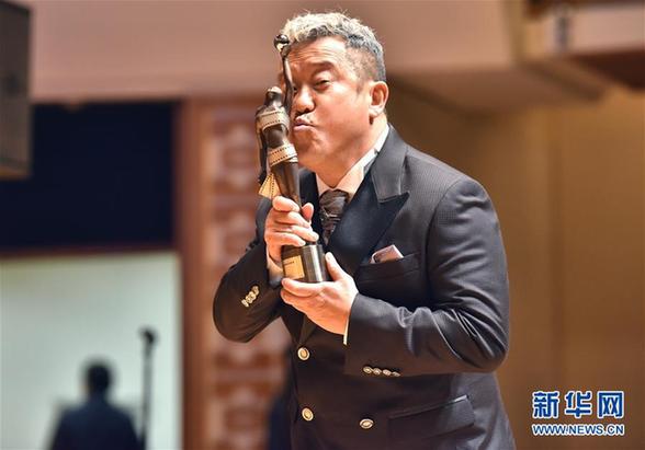 4月9日,第36届香港电影金像奖最佳男配角得主曾志伟在颁奖典礼上。当日,第36届香港电影金像奖颁奖典礼在香港文化中心举行。新华社发(王申 摄)
