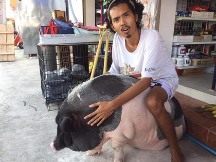 泰国男子把母猪当女朋友养 天天抱着一起睡