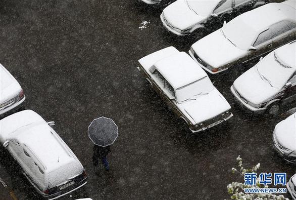 5月11日,在白俄罗斯明斯克,一名女子在雪中撑伞走过。 新华社/路透