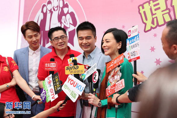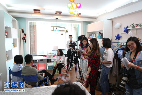 图为媒体探班,采访剧组两位主演许亚军和王琳。新华网 李清摄